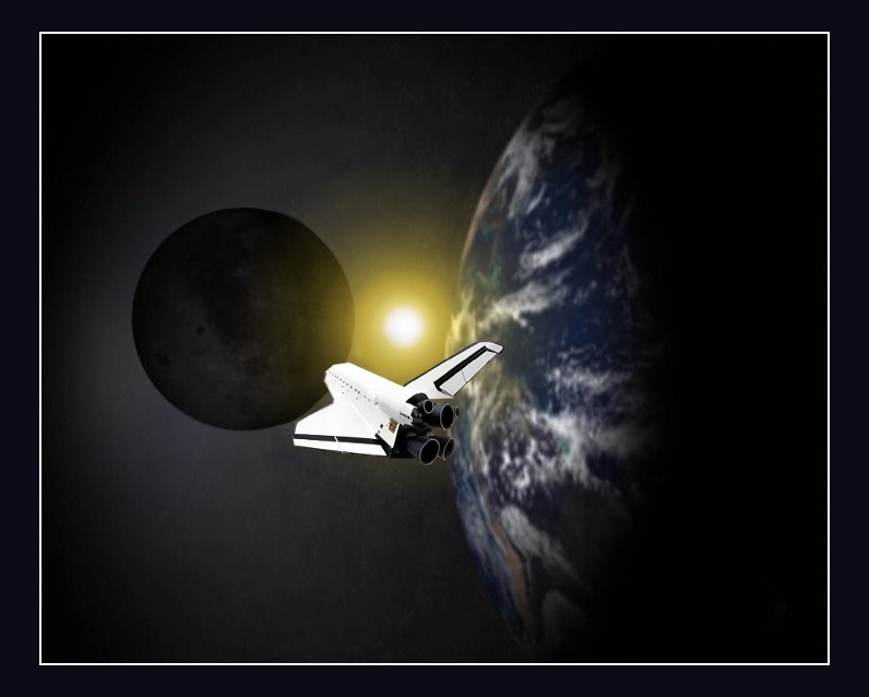 Another idea which came to me while watching TV. Created with the Gimp, Zoner Photo Studio and a photo object of the space shuttle.