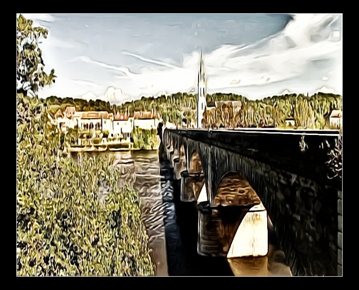 There’s a bridge across the river to the other side, and all those who cross over there have nothing to hide. Whatever they all go there for and seeking to find would not be any of those things they have left behind. ________________ A private image that has been artistically and digitally transformed and now looks like a painting. Created with the Gimp and Zoner Photo Editor.