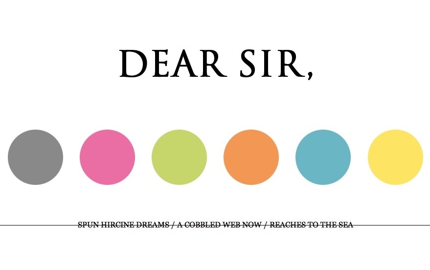 Dear Sir Two of my poems first appeared in Dear Sir (No. 5), an arts journal edited by Sandra Huber. Other contributing authors include: Brent House, David Berridge, Jen Hyde, Michael A. Oliver, Jemma Bailey, Nava Fader, Patrick Williamson, Thomas Denis Gibney, and Travis Macdonald. ISBN: NA publisher: Dear Sir year: 2011 where can you buy?: Free E-Publication internet store: http://www.dearsir.org |
