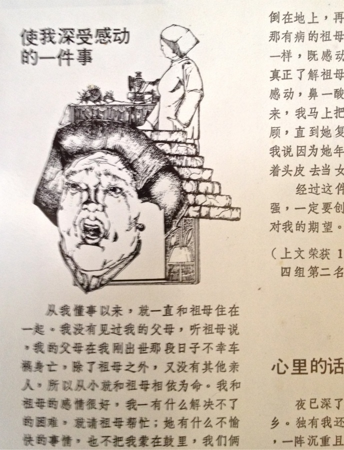 This is my illustration for a Chinese short story published in the school annual. It was drawn in 1986.