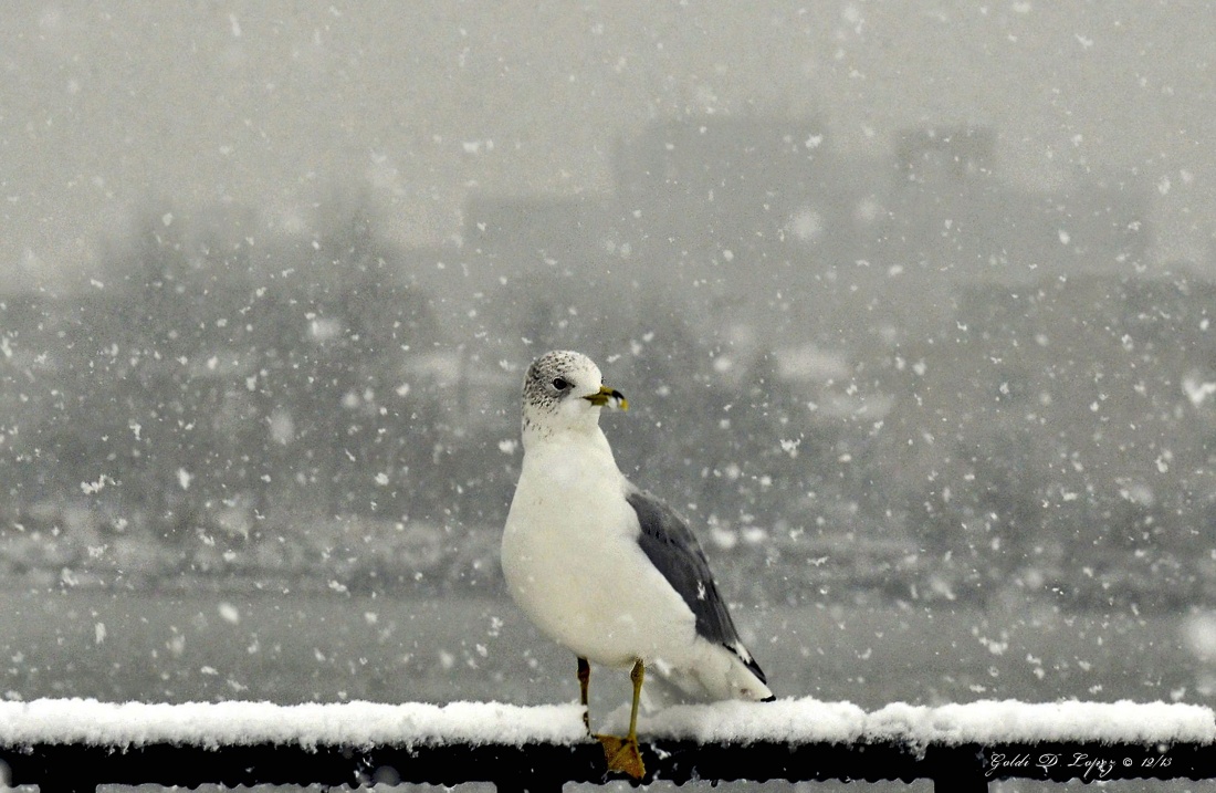 At a park near me, I took pictures in the park while it was snowing. I like the position of the bird and the flying snowflakes around the bird. Hope you like!