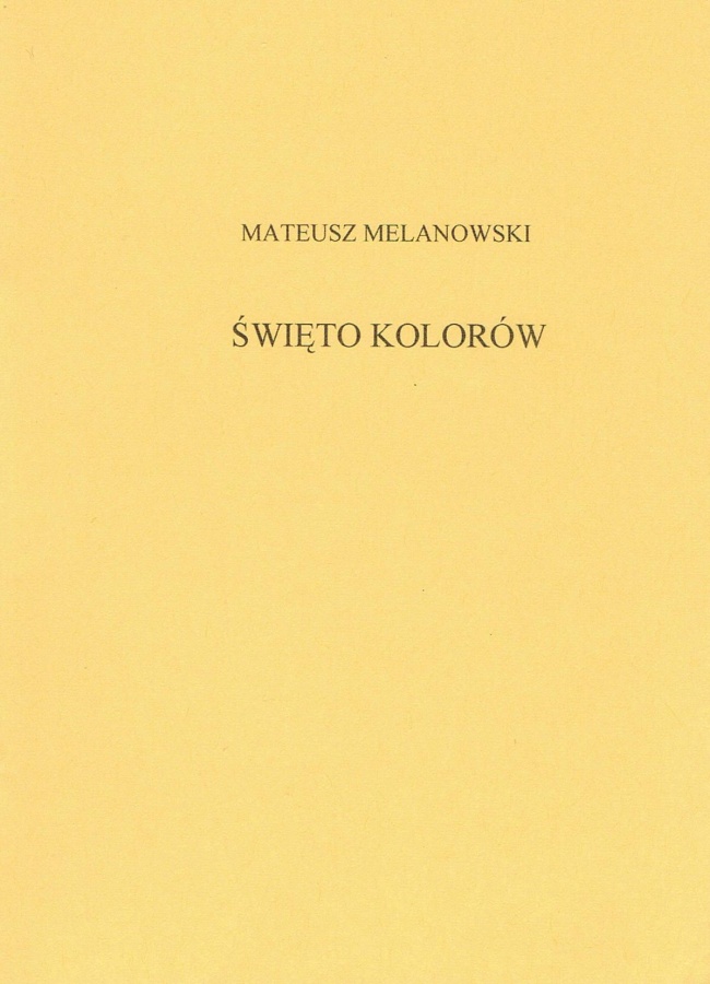 Święto kolorów Tomik o zmienianiu się w dojrzałego faceta. Choć właściwie nie wiadomo czy to prawda. ISBN: 978-83-920503-0-8 publisher: nakład własny year: 2007 where can you buy?: Dostać u autora. Lub przeczytać jej wersję elektroniczną. Link podaję w miejscu sklepu internetowego. internet store: http://issuu.com/matmel/docs/_wi_to_kolor_w |