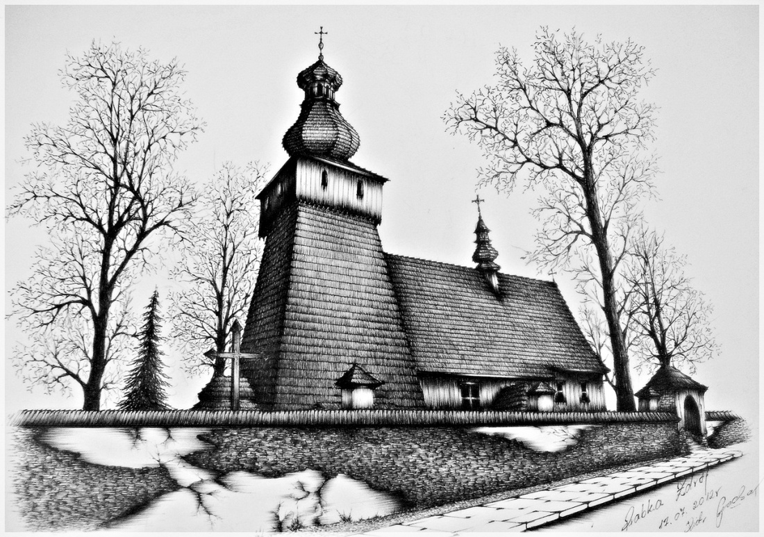 Zlecenie prywatne. Architektura drewniana - Rabka Zdrój Format: A4 Wykonanie: czarny długopis