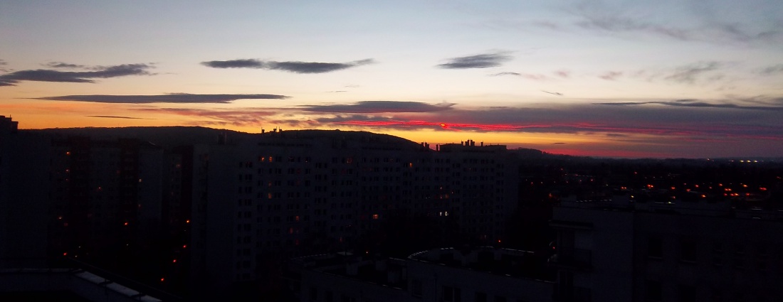 styczniowy zachód słonca na styku nocy i dnia - już prawie noc a słonce trwa!!