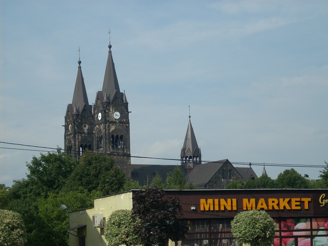 dwie wieże -pierwsze skojarzenieWorld Trade Center  -Ruda śląska Kochłowice kościół Trójcy Przenajświętszej z daleka