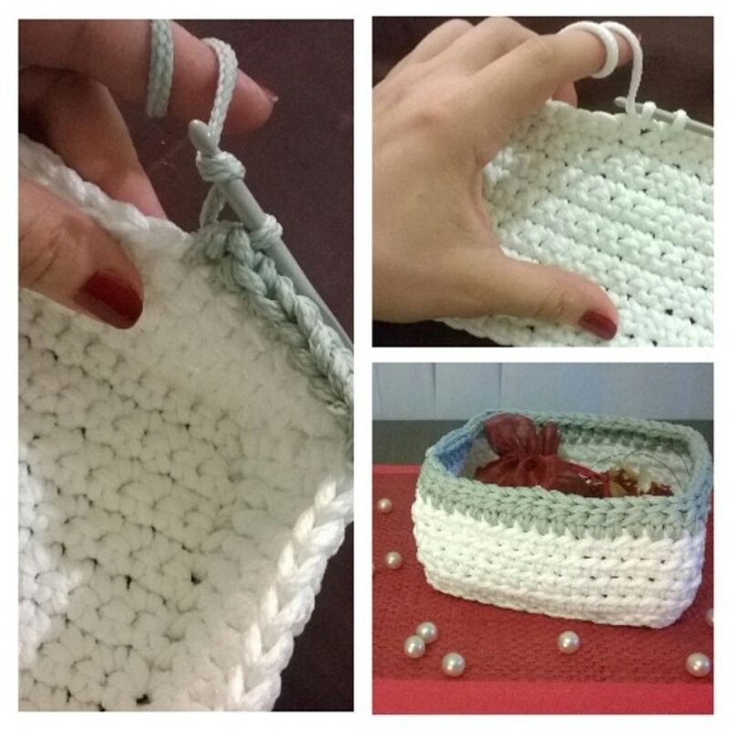 instruktaż: biało-miętowy koszyczek ze sznurka
