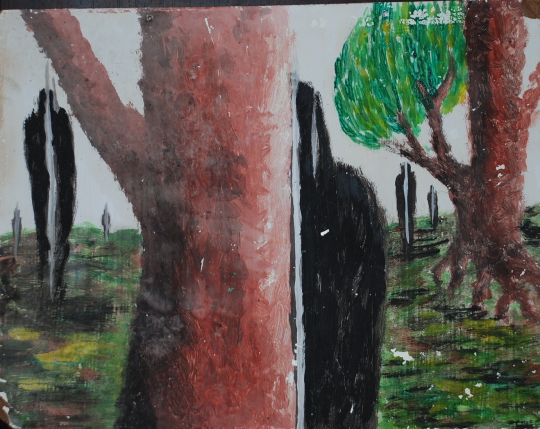 Plakatówka, płyta pilśniwa. Z cyklu w "poplątanej głowie"