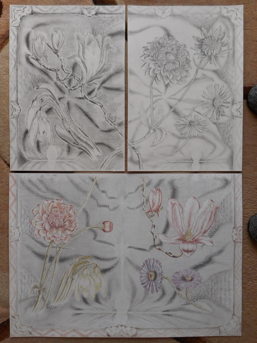 kompozycja trzech prac, jedną wykonałem ołówkiem grafitowym ... druga wykonana węglem ... trzecia wykonana ołówkami Graphitint