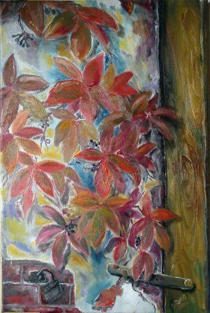 Stary mur i dzikie wino - olej 40x60