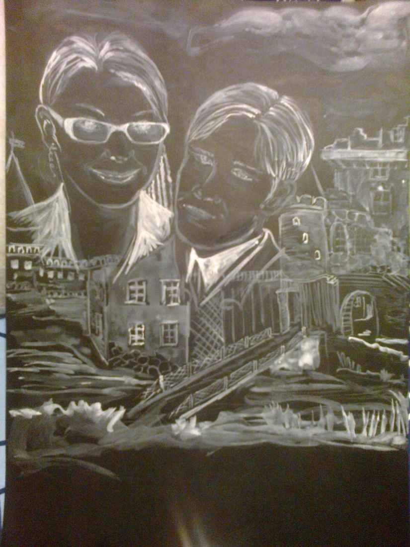 Czarny karton i biała tempera. A3