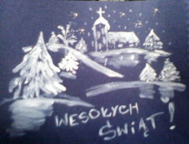 Na granacie biała tempera