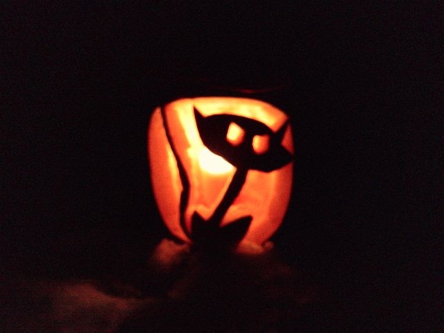 zrobiłam lampionik..jak wam się podoba? Moim zdaniem troszkę krzywo i zdjęcie zwykłym fonem w ciemnościach przed domem ale mi się podoba :) ...miau