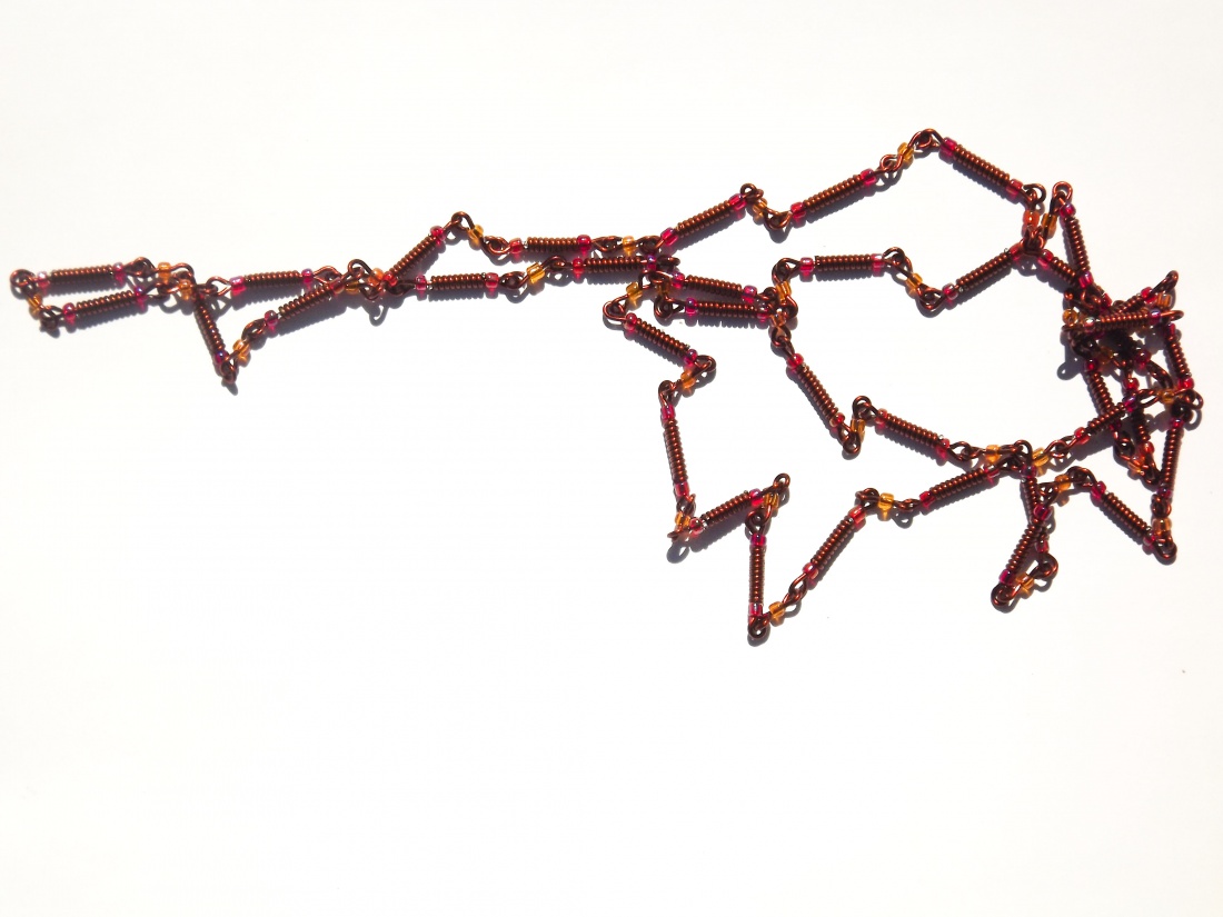 październikowy taniec (miedziany łańcuszek z czerwonymi i pomarańczowymi koralikami)