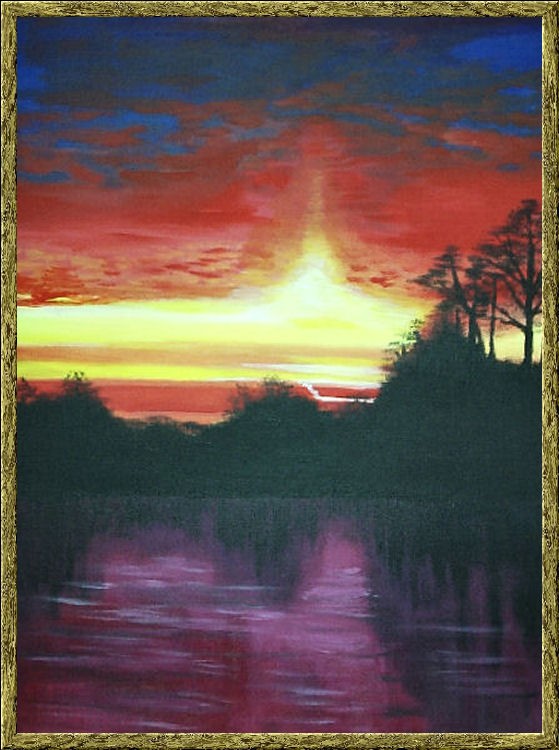 a view from my home, overlooking the river, painted with acrylics on canvas.