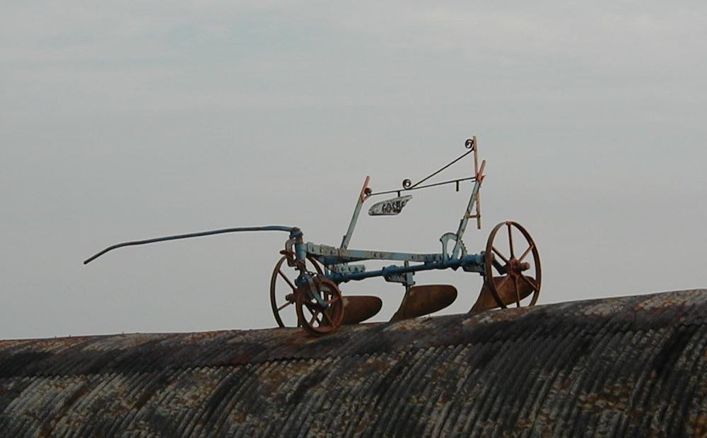 Perched on top of an old farm building adjacent to the house I owned in the 90's, this plough made a useful landmark for visitors to find us in a remote spot.