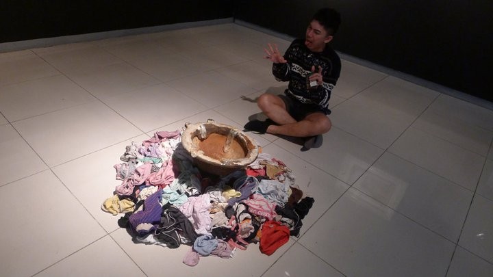 one of installation art scattered around the hallway where we passed by with this art exhibit. i forgot the name of the artist but i can still remember the theme: Red Light District