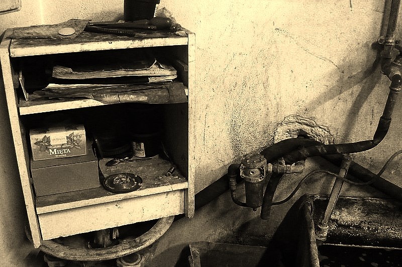 technical information: szafka z płyty paździerzowej, śrubokręt krzyżakowy, kombinerki ze stali narzędziowej z okładziną kauczukową na uchwycie, wąż gumowy φ25 wzmocniony, termometr z podziałką w stopniach Fahrenheita i Kelwina. pasta BHP o granulacji 250 ;)