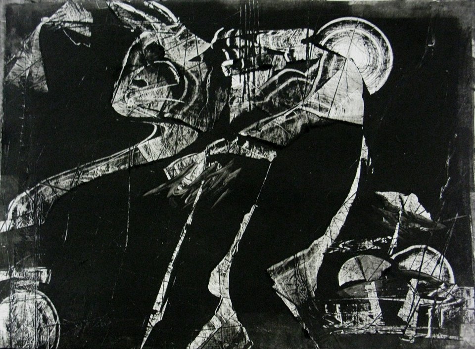 monoprint and collagraph from a 20 x 24" mat board plate. printed on an etching press ~ print made on Lana Gravure Print making paper from France.