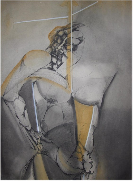 This is a photograph of a water-color I have had for some thirty years painted by a Brazilian doctor whose name I no longer recall and is not present on the painting. I recall the history: though Brazilian by birth, he was raised in regions of Africa, he was strongly influenced by the ritualistic expression of spirituality and divinity embodied by the African tribal collective