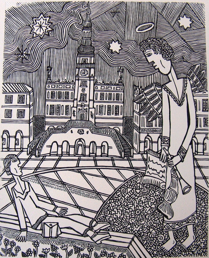 Anioł na tle zamojskiego ratusza