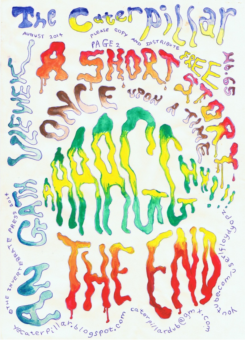 This is a page from my samizdat blog-paper, hope you like it. It was done with ball-point pen and water-colour paint on paper. You can see the whole paper here: http://yecaterpillar.blogspot.co.uk/2014/08/a-short-story-of-no-great-length.html