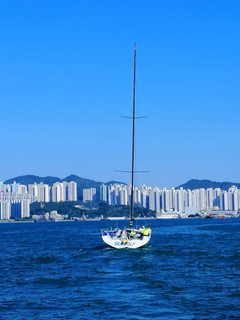 sailing in blue skies and blue sea