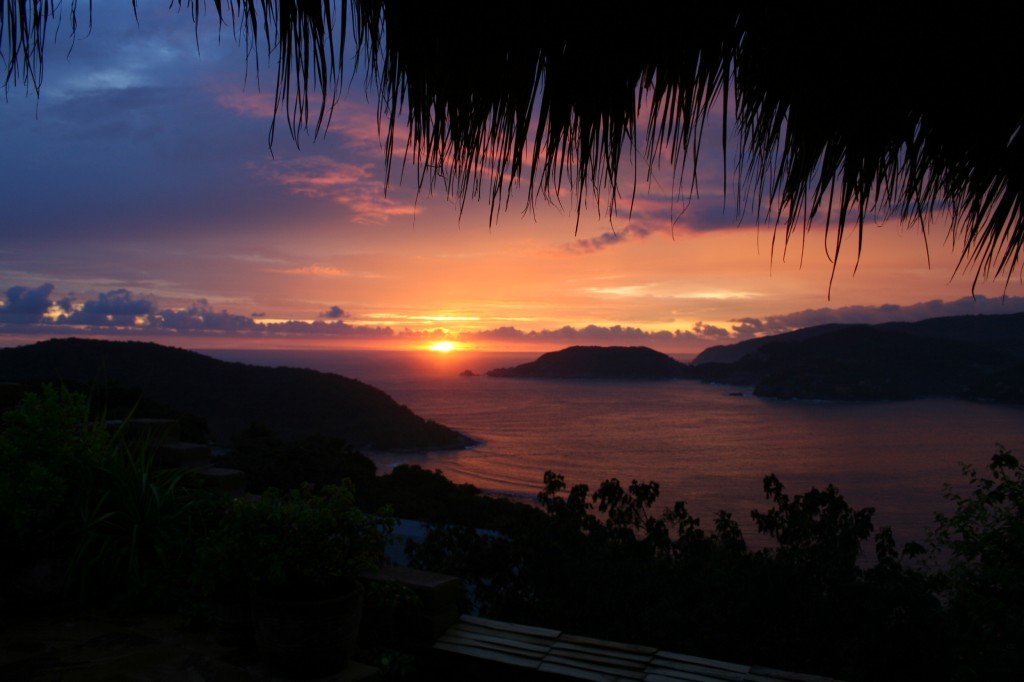 A sunset from my hotel room in Zihuatanejo, Mexico.