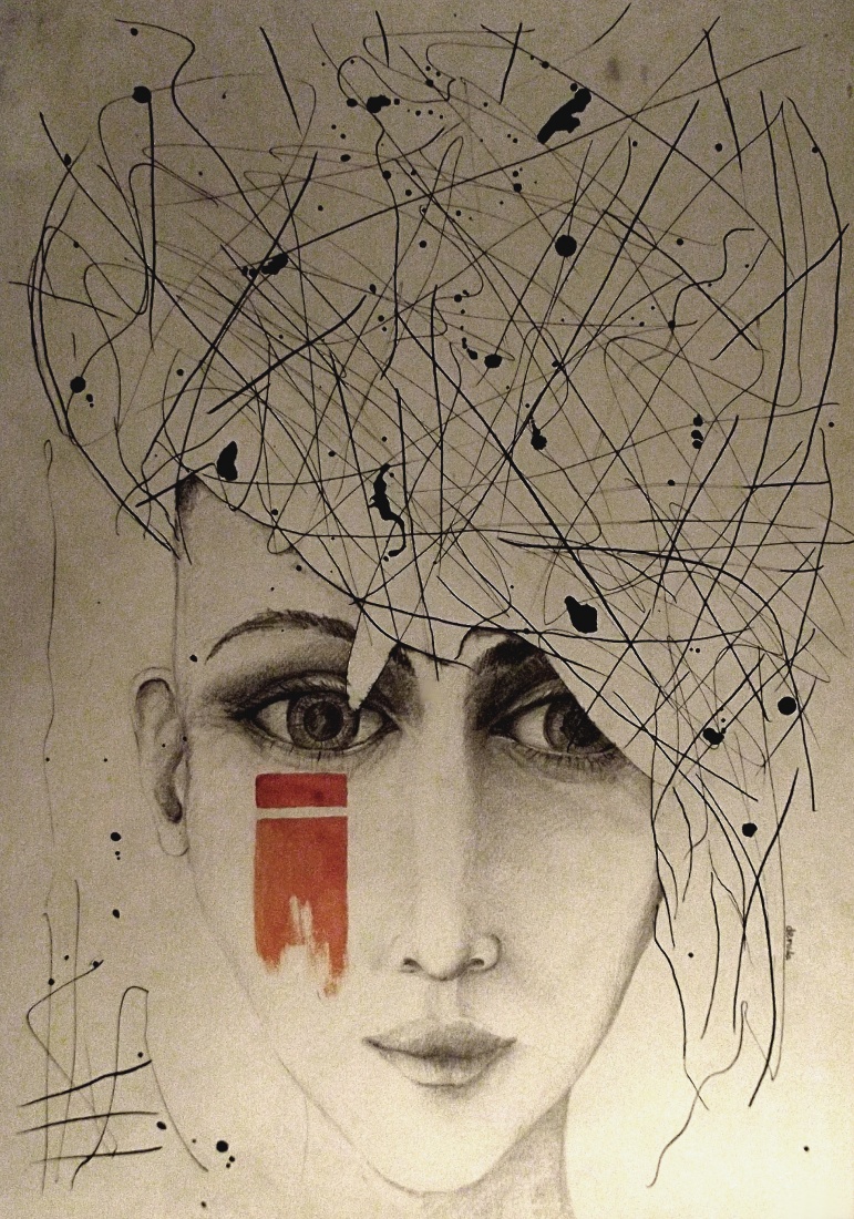ołówek, tusz, akwarela