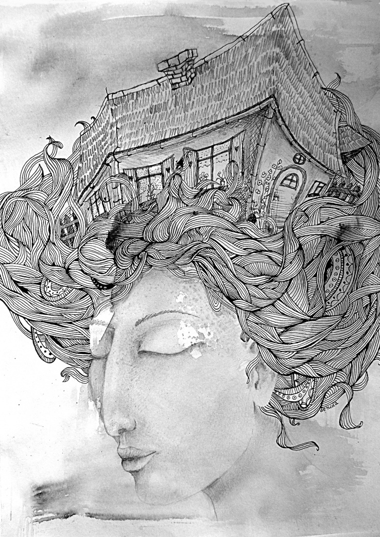 ołówek, piórko, akwarela * tytuł - issa