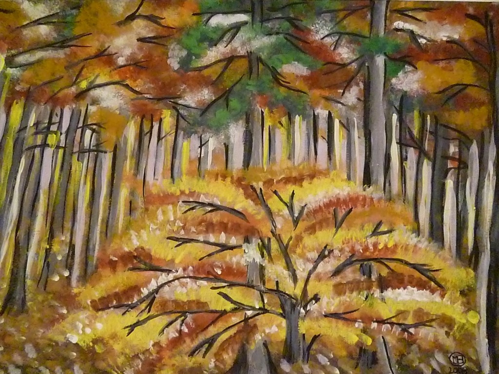 rozkwit barw-2008:)wys-22,5 a szer-32,5:)papier-akwarele-pedzel:)(inspiracja:z foto ktore zrobilam na wycieczce w Czechach-las byl doslownie obsypany roznokolorowymi liscmi:)cos niesamowitego):)