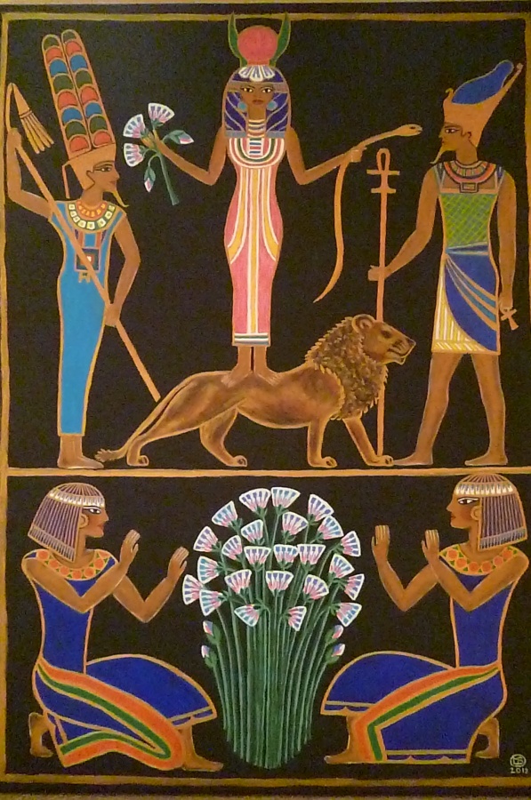 boskie lilie-2012:)wys-69,5cm a szer-50cm:) plotno-akryl-pedzel:)(inspiracja;z foto z rzezby)(odzienie czesciowo kompozycja wlasna i kolory i lilie kompozycja wlasna):)
