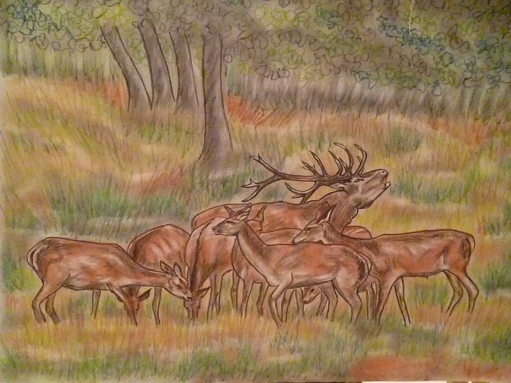 zwyciezca II 2008:)wys-29,5cm a szer-42cm:)kartka-kredki bezdrzewne "Progresso KOH-I-NOOR':) (inspiracja;sarny foto z ksiazki napisze jaki tytul tylko musze poszukac):) tlo;kompozycja wlasna:)