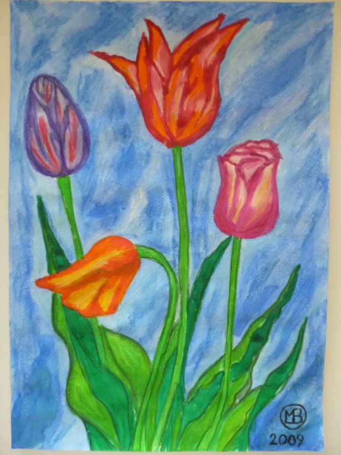 kwietny uklon-2009:)wys-29,5cm a szer-21cm:)kartka-pedzel- kredki i farby akwarelowe:)(inspiracja;calosc kompozycja wlasna)obrazek namalowany w 2009 a odswiezony kolorami w 2012):)