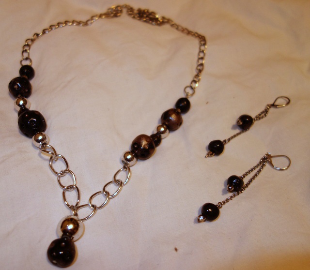zabawa w biżut - z koralików ceramicznych własnej roboty i okazyjnie kupionych łańcuszkow