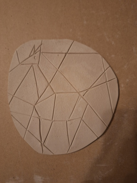 Przygotowanie do mozaiki - trochę widać, co to będzie po poszkliwieniu i wypale :)
