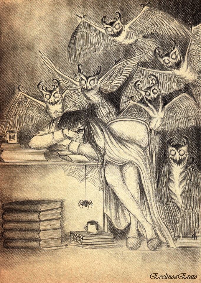 Już jutro powrót na uczelnię, a że wieczory coraz chłodniejsze i ciemniejsze.. Przeróbka słynnej ryciny Francisca Goi.
