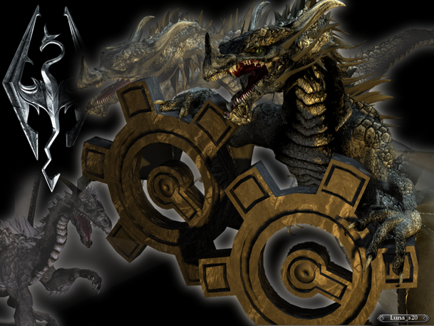 Swojego czasu logo zrobione dla pewnego forum poświęconego grom. Postać Alduina była wówczas dostępna wyłącznie na krótkim trailerze na YouTube, dlatego też musiałam improwizować. Logo Skyrim oczywiście zaczerpnięte ze Skyrim. Koła zębate stanowiły wówczas logo forum, dla którego był robiony obrazek. Narzędzia: LightWave Modele: własne Praca na warstwach: PaintShopPro