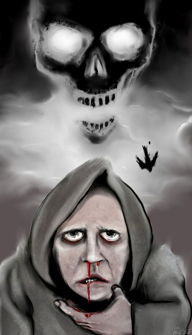Mój kolejny olany przez zleceniodawce projekt. Miała to być ilustracja do gry karcianej. Karta miała przedstawiać zwiastun śmierci. Może zbyt przekombinowałem ;)