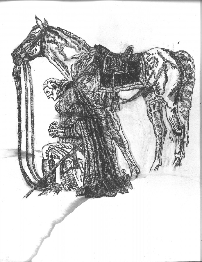 This Pen And Ink was rendered from a image Of the painting entitled," The Prayer At Valley Forge" by artist Arnold Friberg. I drew this rendering from my computer screen. It took a couple of hour to draw. I carved this image on a pumpkin at the annual Chadds Ford Historical Society Great Pumpkin Carve. So this rendering was done as a guide not a finished piece . As you look over this picture you will notice the ink ran in a few places, that is be cause it was raining while I was carving the pumpkin. Even though I had clear plastic laid over the picture,rain still got it wet. It seem like almost ever time I took part in this event it has rained . The reason I chose to carve this image is be cause the battle of the Brandywine was fought around the town of Chadds Ford, and because George Washington was a renown Christian man of Prayer. Just as the thirteen colony were frighting their way through hell to gain their independence from England, I feel our nation is going through Hell to maintain the principle the founding fathers had laid as the foundation of this country. Our country is in trouble and no political party can save this nation,only The American People who humble themselves before God,repent of their rebellious ways against God, and pray for His forgiveness,and seek Him to guild our nation out of the dark,and back into the light. Then will our nation be able to receive blessings from the hand of God. Stephen J. Vattimo July 16, 2012