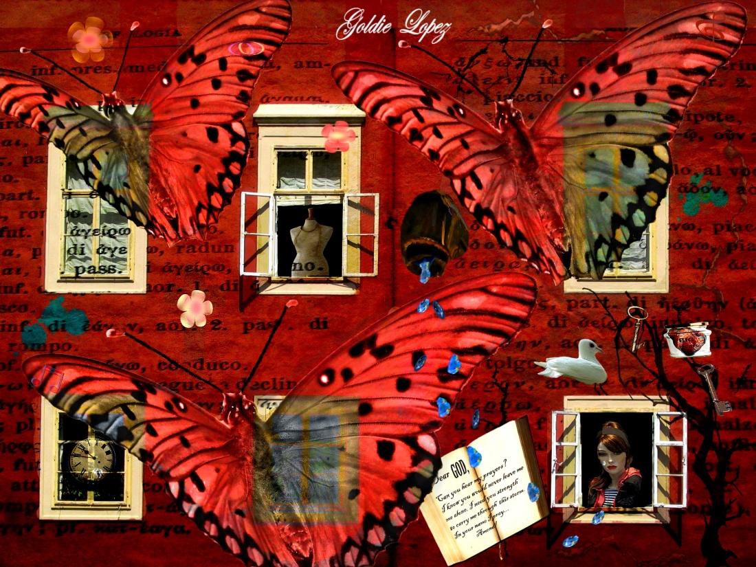 Well, this is something I was working on and really found myself emerged into the piece. There is plenty of symbolism in this image. And the story/theme reflects my life and the partial journey that I'm on. I'm not sure what kind of art this is... so if anyone knows please tell me. I find myself truly influenced by symbols, and what they stand for. So, most of all my work has hidden messages or symbols within it. I like to make people think and question and than reply. This isn't everyone's taste, but I know for sure it's mine. Thanks in advance Goldie :)