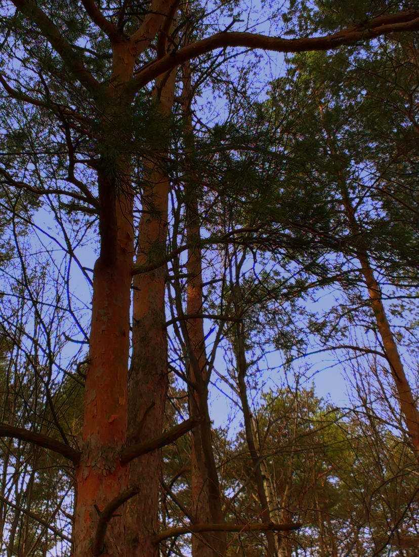 a pine on a blue sky