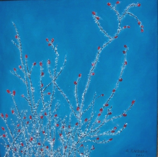 Głóg w zimie-olej na płótnie 41x41cm