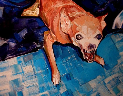 maly a jaki zajadly... gatunek wystepujacy czesto na podhalu.wytepuje tez okazyjnie na trzech nogach(piajni chlopi czesto przetracaja im konczyny nie mogac zniesc niemilosiernego wrzasku i zmeczeni cerowaniem nogawek).obraz olejny retuszowany komputerowo.2004