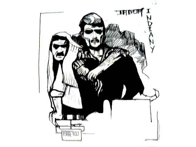 szybki szkic z autobusu hindusow podrozujacych na naczepie samochodu ciezarowego.scan.stare i z nudow odgrzebane,nikomu nie pokazywane.