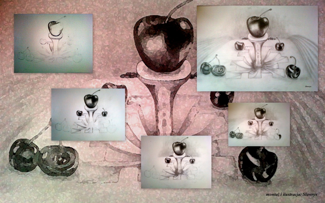 kwaśno-słodkie efekty szaleństwa ołówków na białej powierzchni ... czyli: wiśnie na szaro