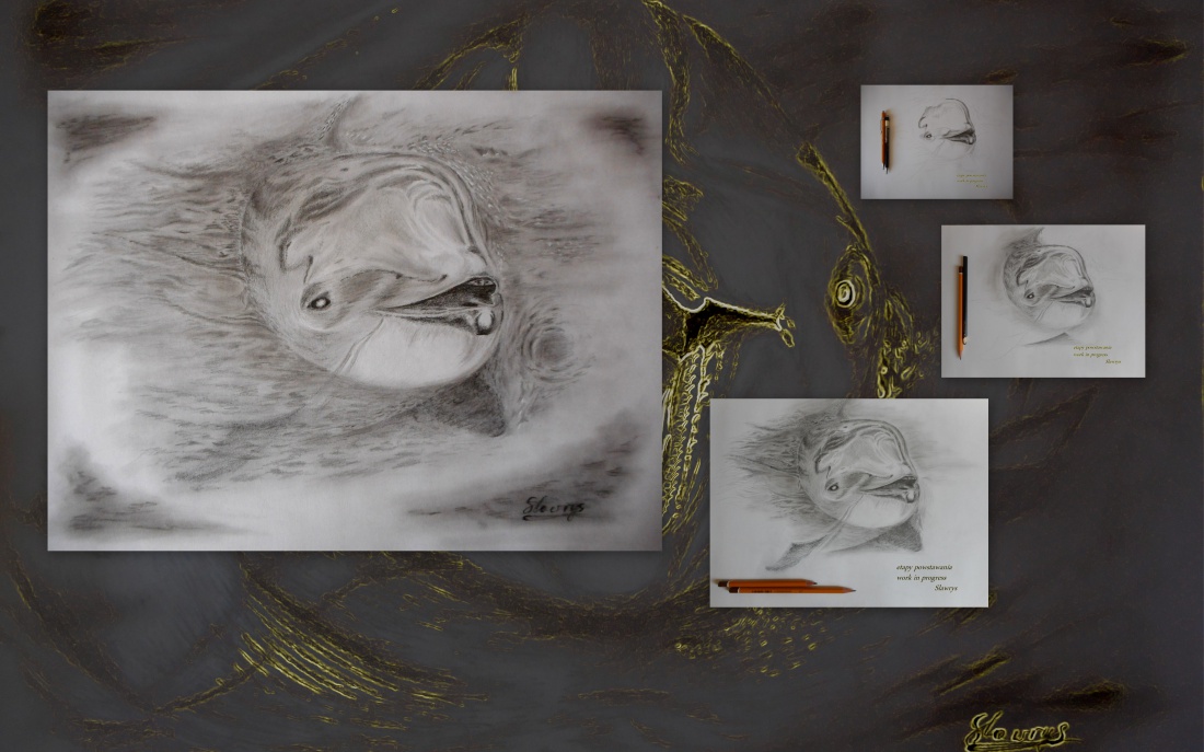 wersja mokrego morświna urządzonego na sucho na papierze! zmoczyły ołówki od 8H do 8B i nawet węgiel