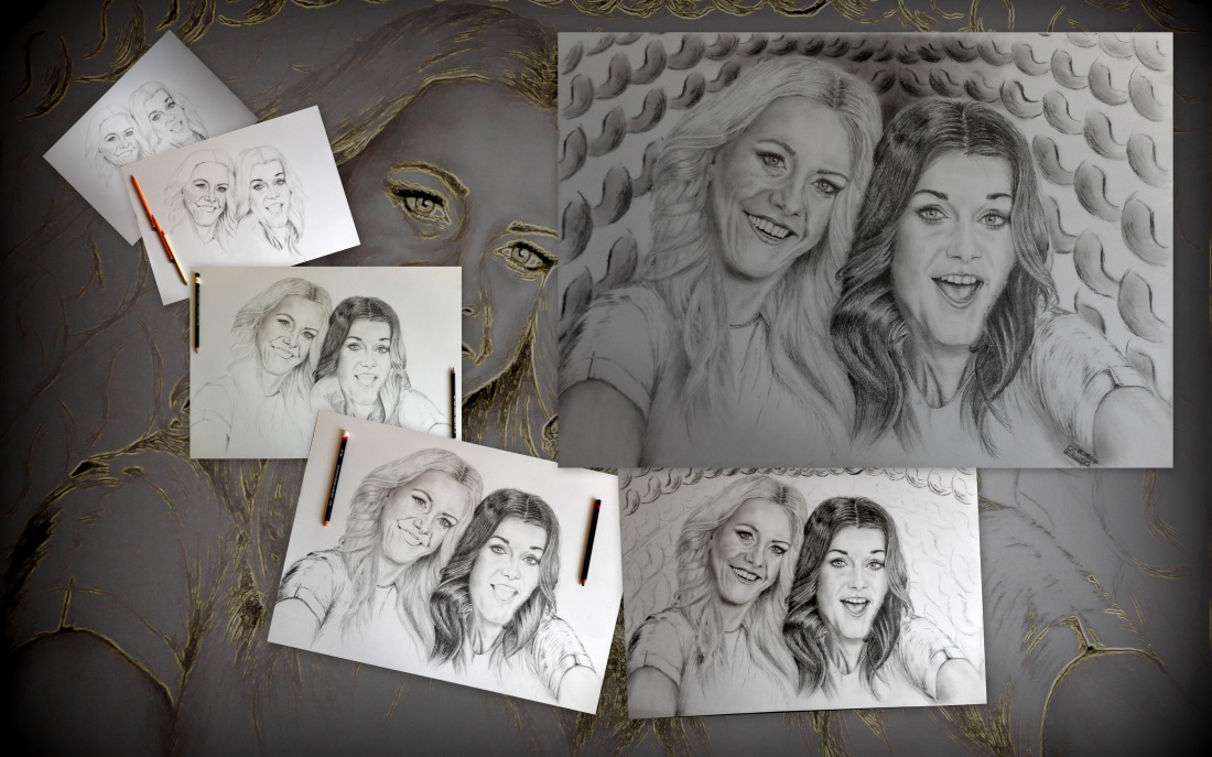 etapy powstawania rysunku - portret sióstr ... ołówki i węgiel w ramach kooperacji pozbawiały biel miejsca na kartce. Efekt - na załączonym obrazku!