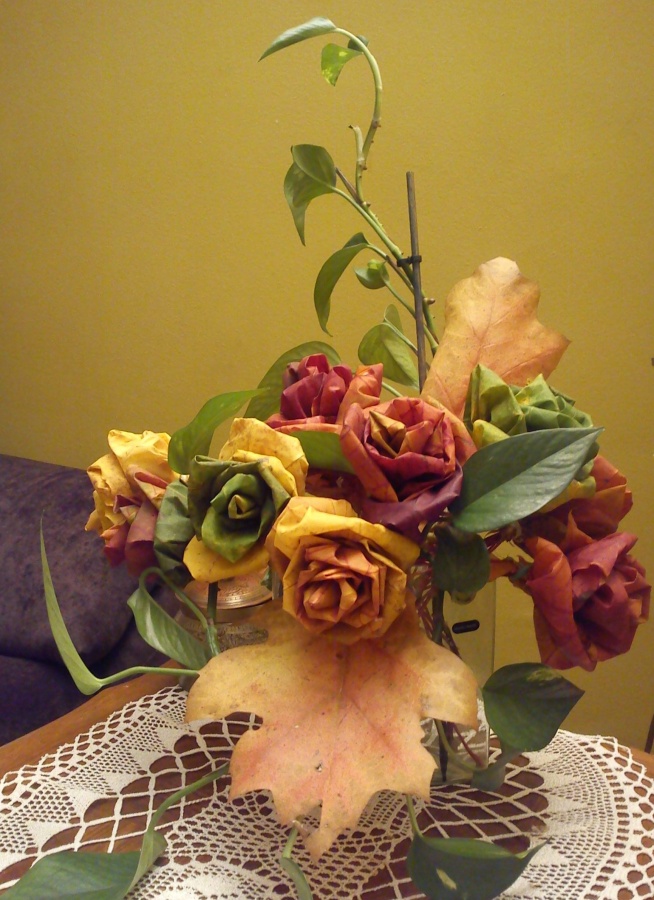 To róże z liści klonu. od wielu lat każdej jesieni robię sobie taki bukiecik