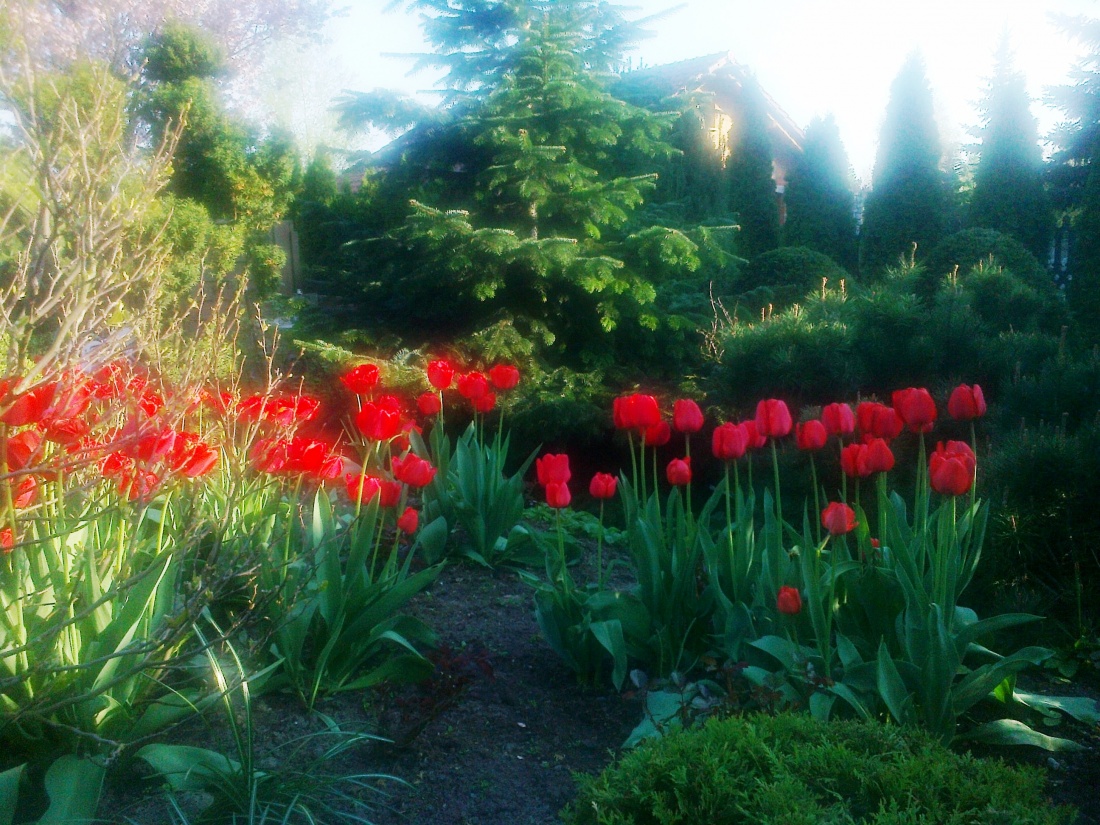 czerwone tulipany w ogrodzie teściowej mojego syna - prawda, że cudne?!
