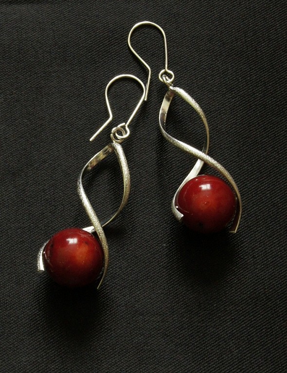 Kolczyki wykonane z naturalnego koralu i srebra